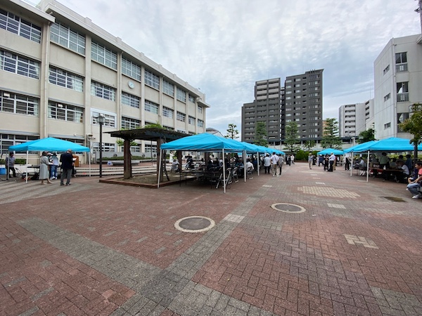 好天のなかたくさんの藤蔭会員とご家族の皆さまが母校春日丘高校にお集まりくださいました。